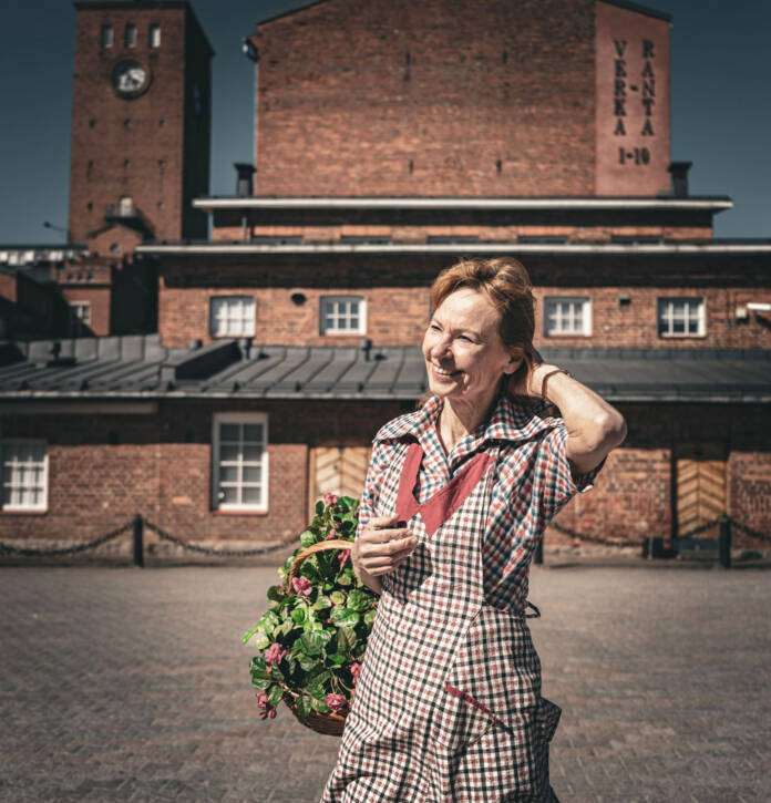 Eeva Turpeinen luotsaa Verkatehtaan värikkäät vuodet -opastuskierrokset.